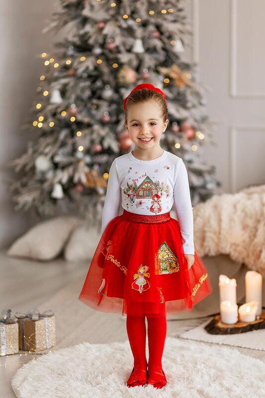 Прекрасна блузка с принт червена шапчица, ръчна декорация с пъстри кристалчета. Комбинирайте с пола Червена шапчица и аксесоари от същата серия. Изработена от: 90% памук, 10% еластан