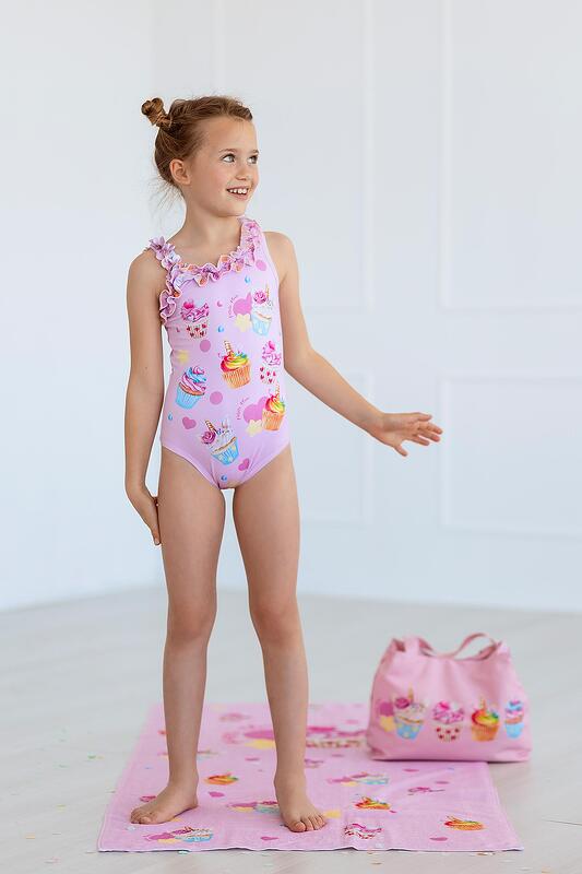 Страхотна плажна кърпа от серията за плаж с мъфини , изработена от висококачествен антибактериален материал. Състав : 100% полиестер лицева страна и 100% памук гръб.
