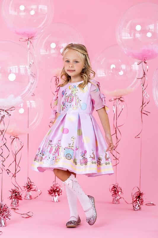 Рокля в розово с принт Цирк